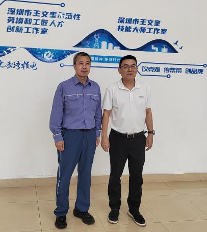 调研组特别走访了深圳市王文奎核电机械维修技能大师工作室,吴登记会长与王文奎大师进行了亲切交流,对其在核电机械维修领域的精湛技艺和突出贡献给予高度赞赏。该工作室于2025年1月获评深圳市技能大师工作室,是深圳市技能人才培养领域的重要载体,体现了王文奎大师及其团队的高超技艺和行业贡献,也彰显了中广核在高技能人才培养方面取得的显著成效。