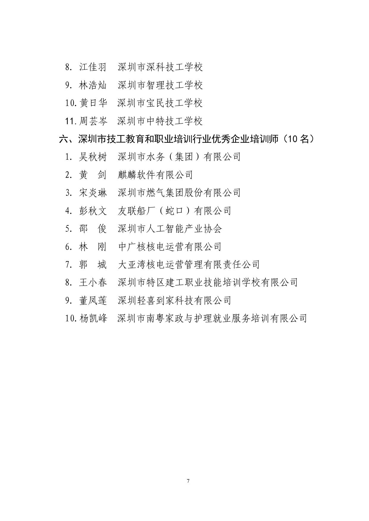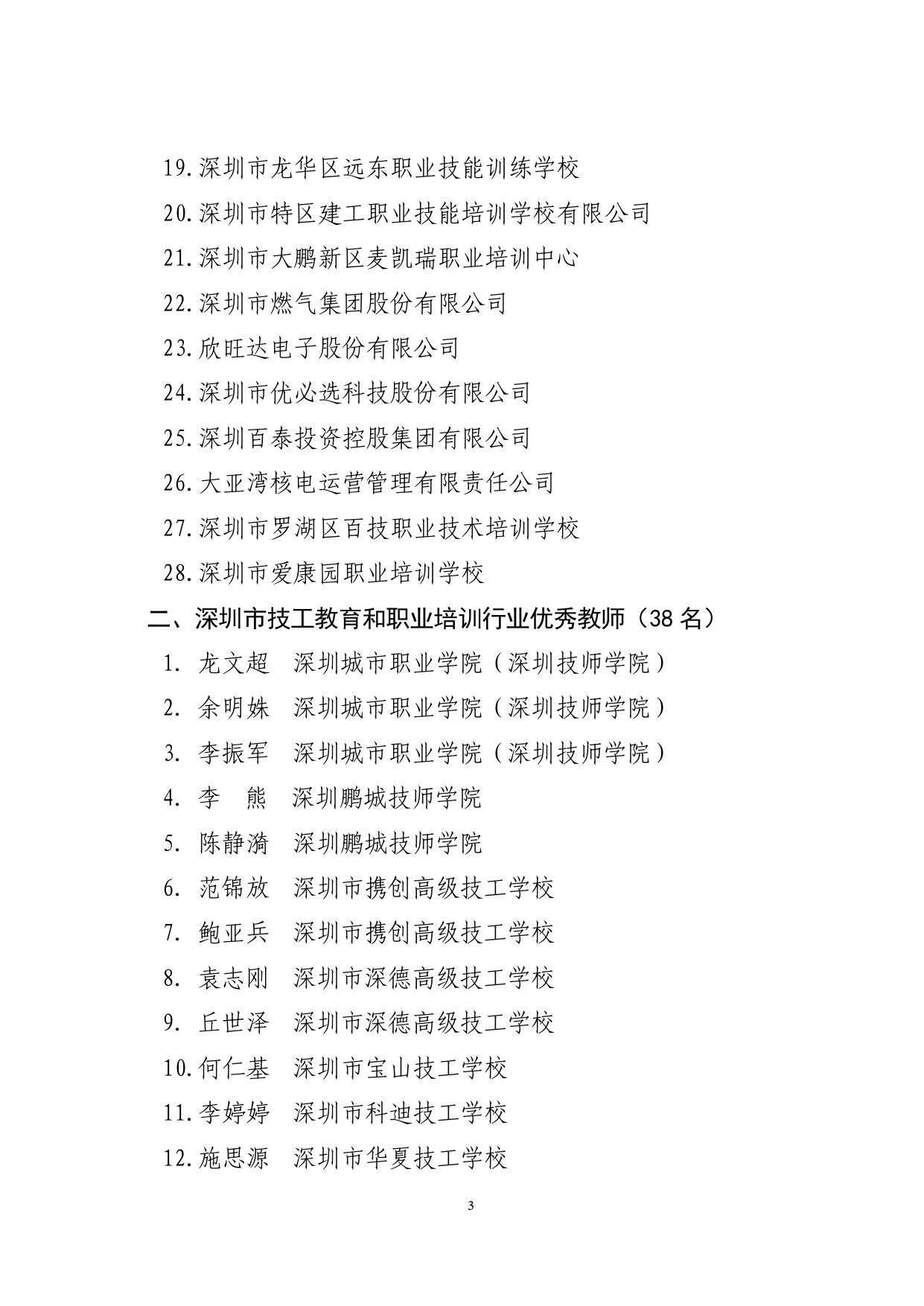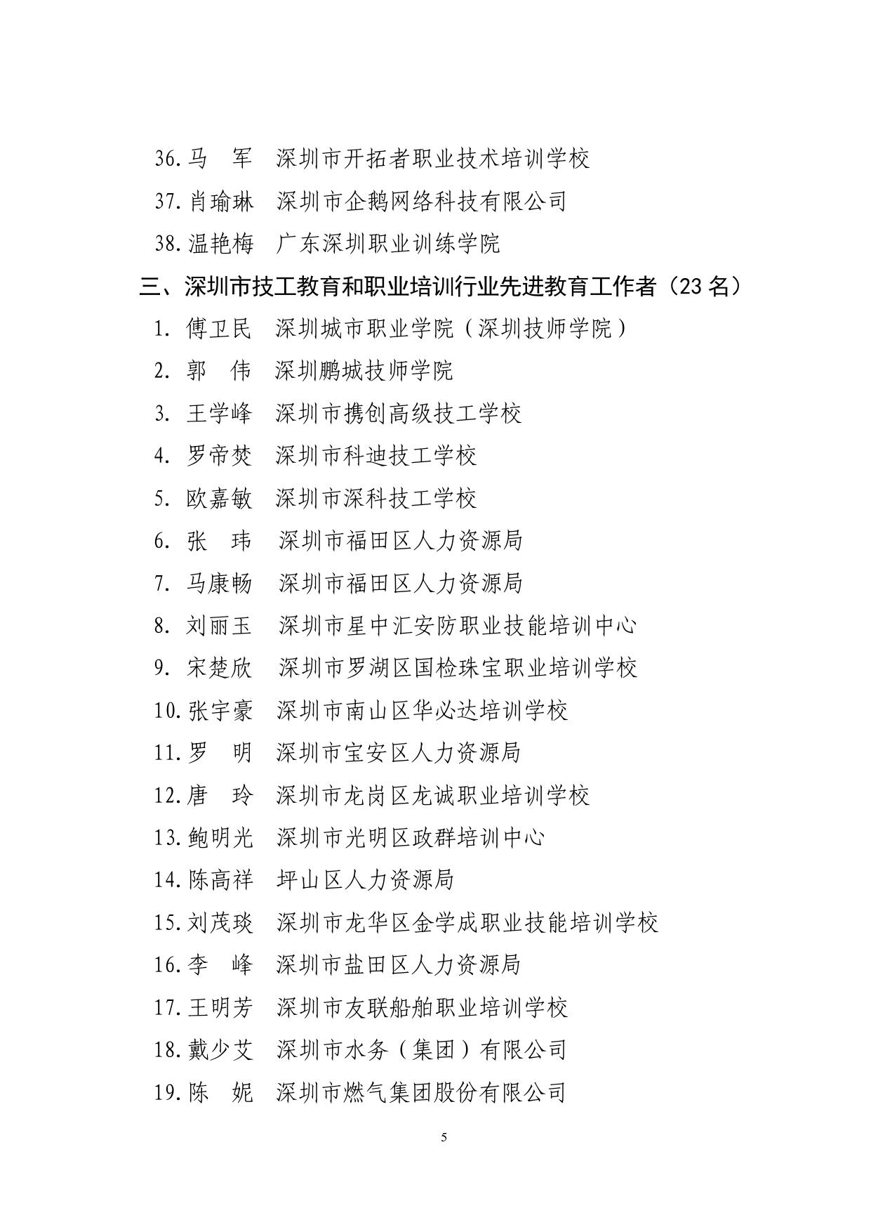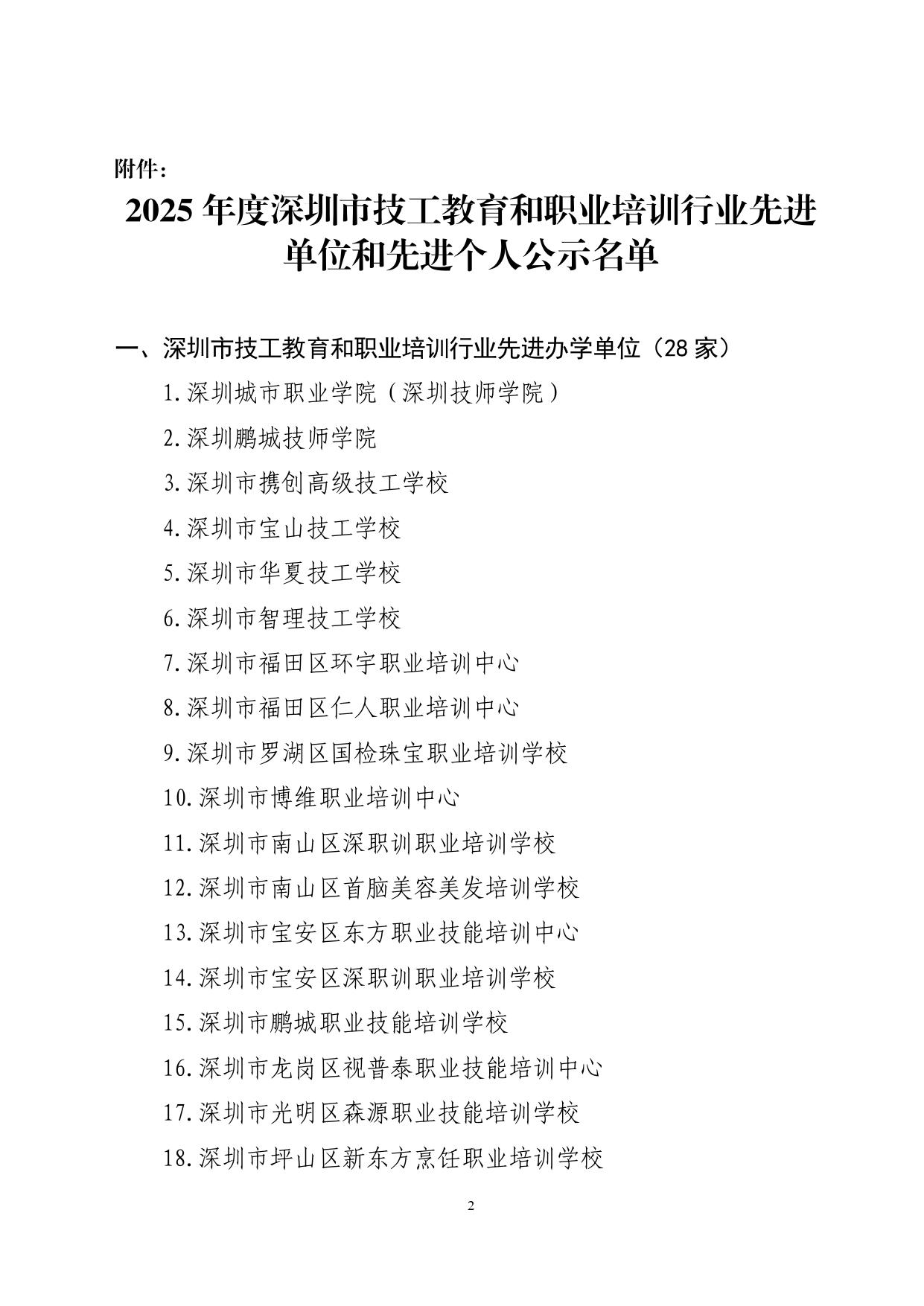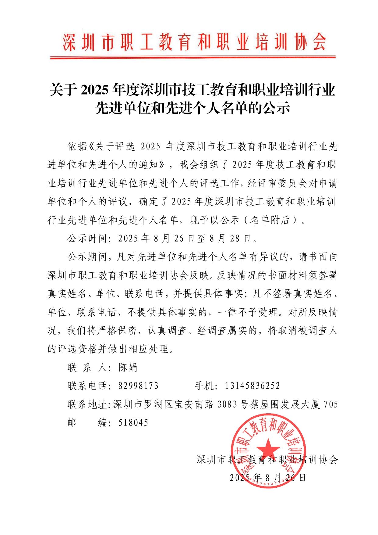 关于2025年度深圳市技工教育和职业培训系统先进单位和个人名单的公示
