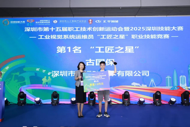 我市把职业技能竞赛作为树立技能人才标杆,推动全社会关注技能、重视技能的重要举措,为体现对技能人才的关心关怀和对人才工作的重视,于2025年8月28日在深圳国际会展中心12号馆举办深圳市第十五届职工技术创新运动会暨2025年深圳技能大赛—工业视觉系统运维员“工匠之星”职业技能竞赛闭幕式。深圳市人力资源和社会保障局党组成员、副局长马艳,深圳市职工教育和职业培训协会会长吴登记,深圳市人力资源和社会保障局技能人才评价指导处处长杜乐、二级调研员苏宝玲,深圳市宝安区人力资源局党组副书记、区职业训练中心主任郭东江,深圳市人工智能产业协会执行会长范丛明,杭州汇萃智能科技有限公司董事长周才健等相关领导出席闭幕式并为获奖选手颁奖。