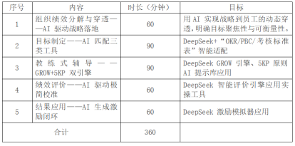 本课程旨在响应“人工智能+”行动,解决绩效管理中“目标虚化、评价偏差、激励失效”三大难题,通过AI工具实现战略穿透、精准辅导与智能激励。
