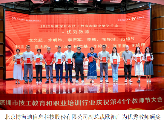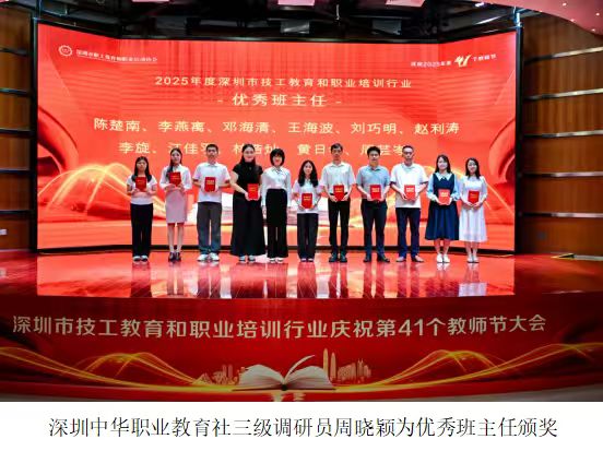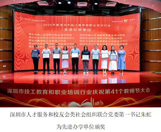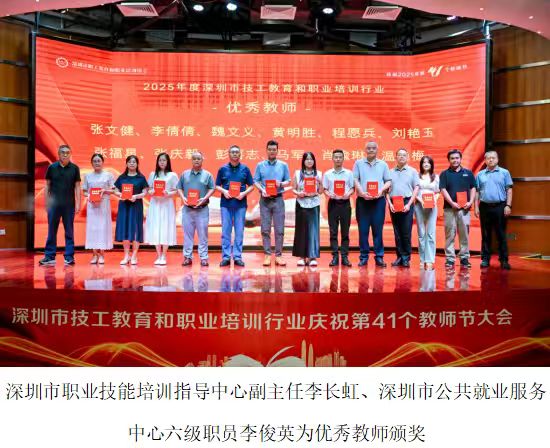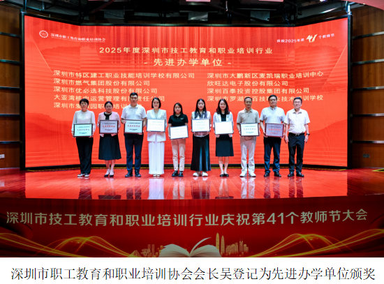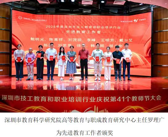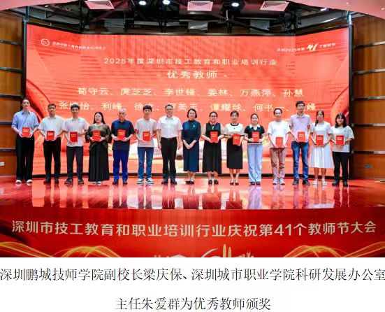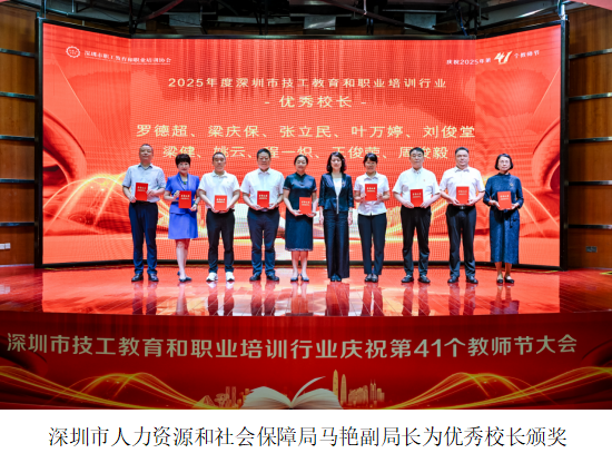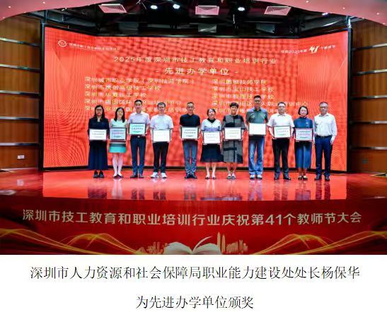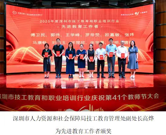 金秋送爽,硕果盈枝。在第41个教师节来临之际,由深圳市人力资源和社会保障局指导、深圳市职工教育和职业培训协会主办的“2025年度深圳市技工教育和职业培训行业教师节表彰大会”于9月5日下午在深圳鹏城技师学院侨城校区礼堂隆重举行。大会以“匠心织梦·师韵鹏城”为主题,表彰了一批在技工教育和职业培训工作中涌现出的先进单位和先进个人,弘扬尊师重教的社会风尚,凝聚行业奋进力量。