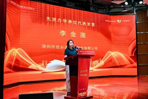 先进办学单位代表深圳市优必选科技股份有限公司产教融合运营负责人李金莲发言