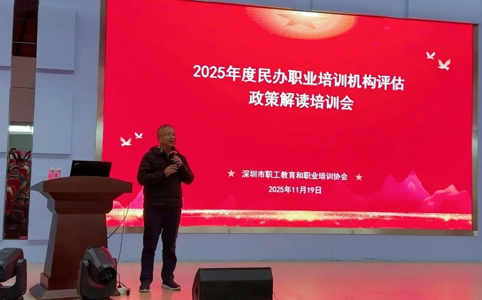为深入贯彻落实《民办教育促进法》《职业教育法》等法律法规精神,进一步提升我市民办职业培训机构规范管理水平与办学质量,做好2025年度评估准备工作,11月19日下午,由深圳市人力资源和社会保障局指导、深圳市职工教育和职业培训协会(以下简称“市职协”)组织的“2025年度民办职业培训机构评估业务培训会”在高训大厦成功举办。全市各民办职业培训机构负责人及教学管理人员约180人参加了本次培训。