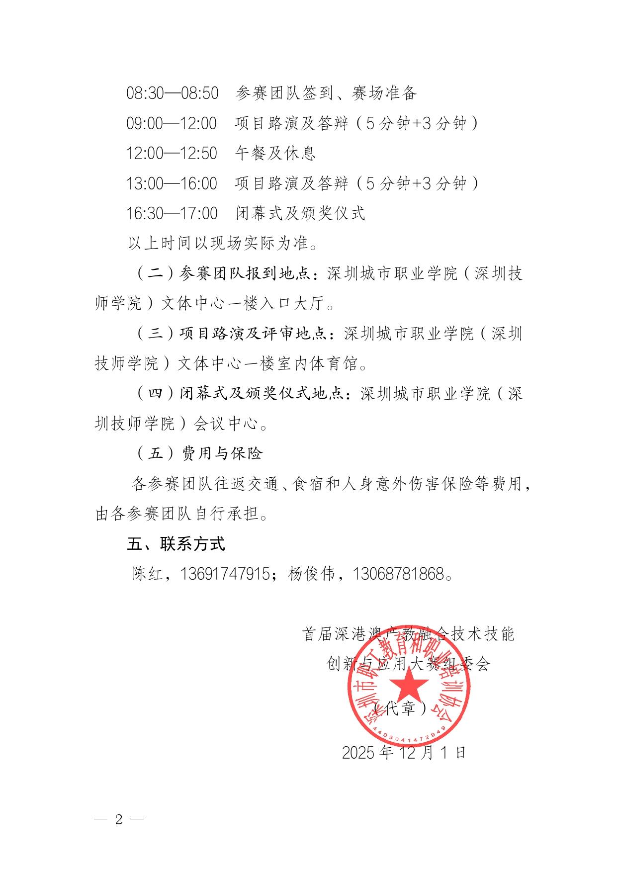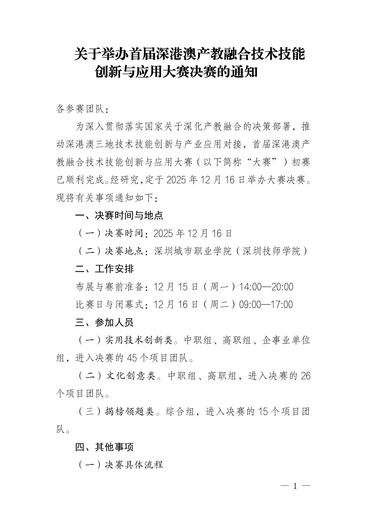 关于举办首届深港澳产教融合技术技能创新与应用大赛决赛的通知