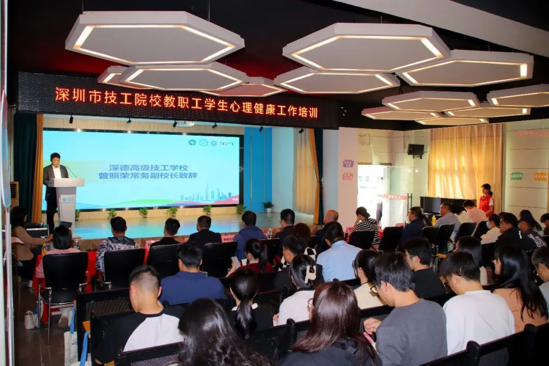 深圳市深德高级技工学校曾照荣常务副校长出席活动并致辞。曾校长在致辞中对各位领导、嘉宾以及参与培训的教职工表示了热烈的欢迎和诚挚的感谢。他强调了学校一直以来对学生心理健康教育的重视,认为此次培训对于提升学校教职工在心理健康教育方面的专业素养具有重要意义。