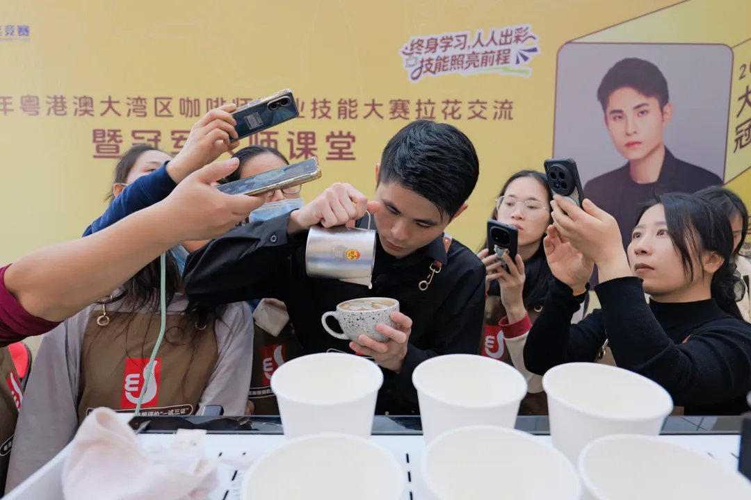 作为粤港澳首次联合举办的最高级别咖啡赛事,赛事严格参照咖啡师国家职业技能标准及粤港澳咖啡师“一试三证”评价规范,采用“咖啡拉花制作”与“咖啡杯测”双模块实操考核,全面检验选手从技艺到感官的综合职业能力。