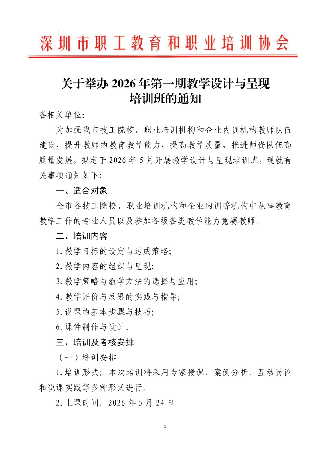 关于开展2026年第一期教学设计与呈现培训班的通知
